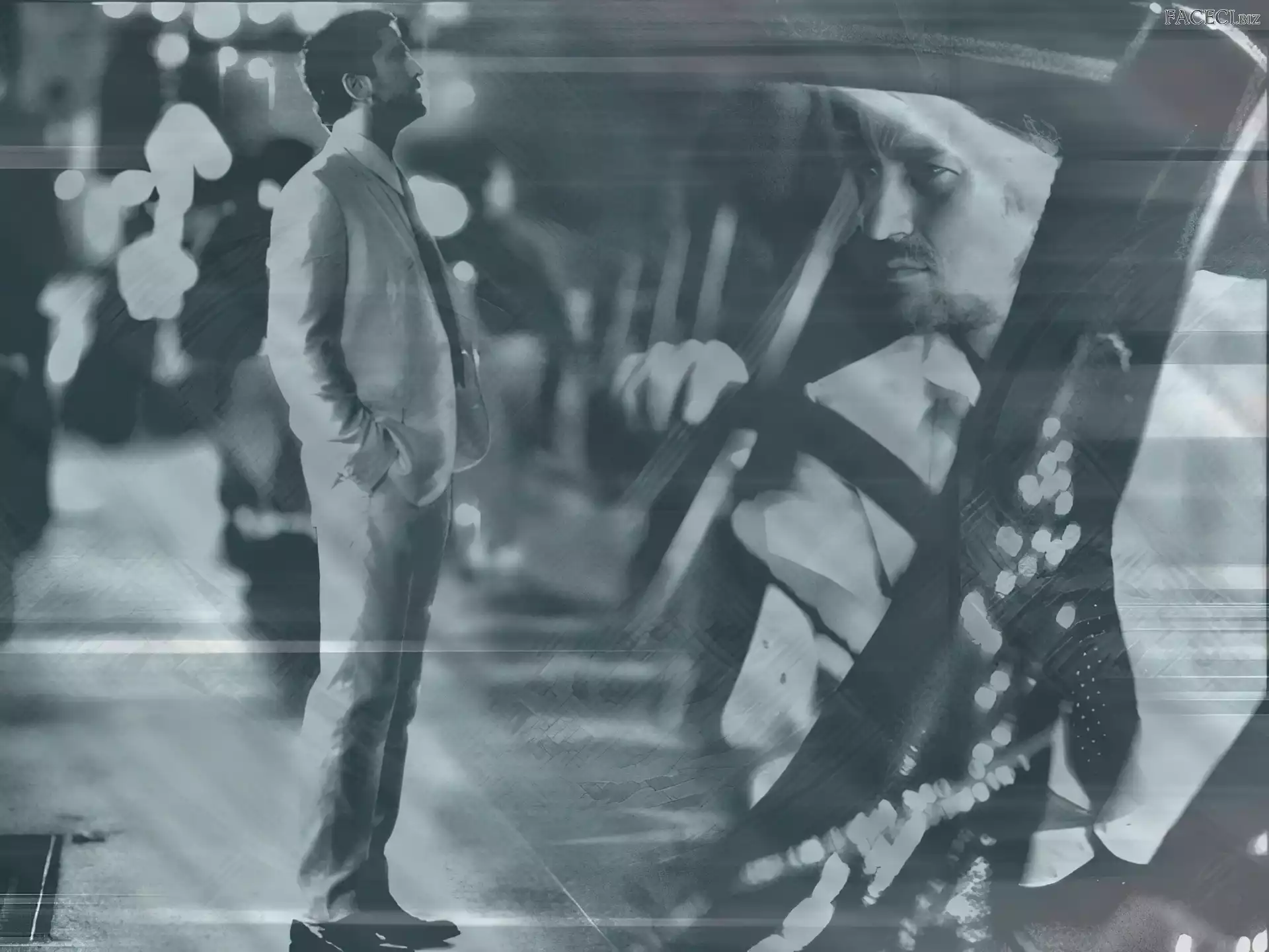 Gary Oldman, pasiasta marynarka Mê¿czyzna, Misio Morze, Kobieta, Mê¿czyzna Mê¿czyzna, Kapelusz, Droga, Gitara Gepard, Walker, Drzewo, Paul rêka, Bruce Willis, g³owa krawat, Elijah Wood, u¶miech Viggo Mortensen, niebieskie oczy napisy, Zagubieni, Serial, rozbity, samolot, Lost, Josh Holloway